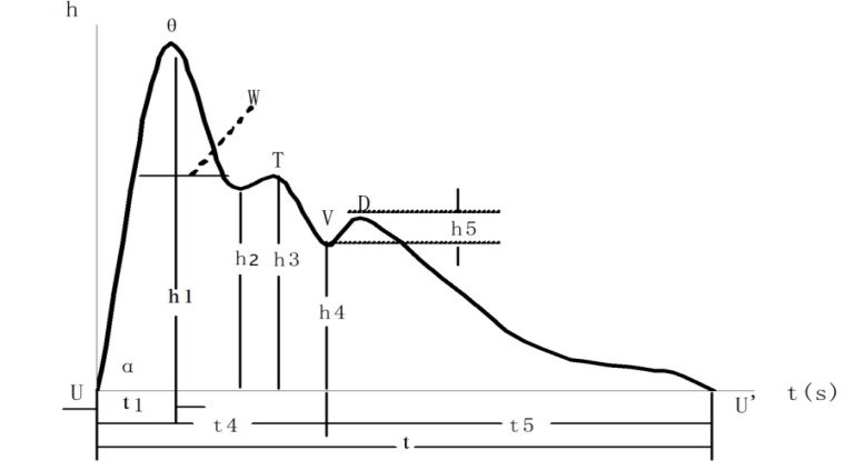 注明所有参数对应的定义信息,如h1定义为脉图最高点距离时间轴的长度。