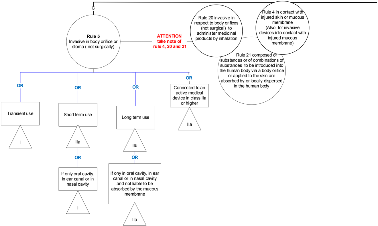 | IIa | All invasive devices with respect to body orifices, other than surgically invasive devices, which are intended to administer medicinal products by inhalation are classified as class IIa, | Spacer intended for metered dose inhalers (attached to the inhaler) unless treating life- threatening conditions. |
