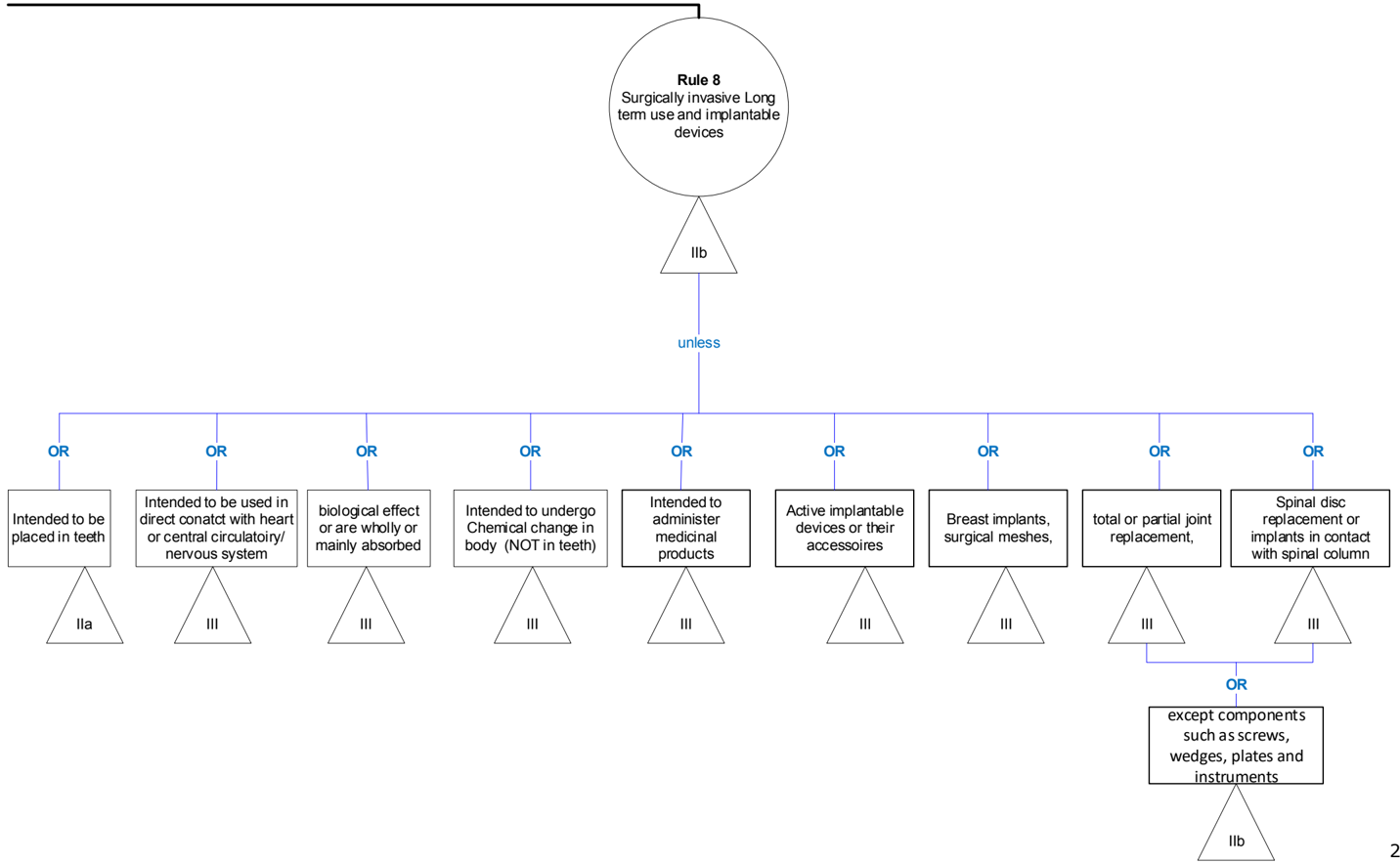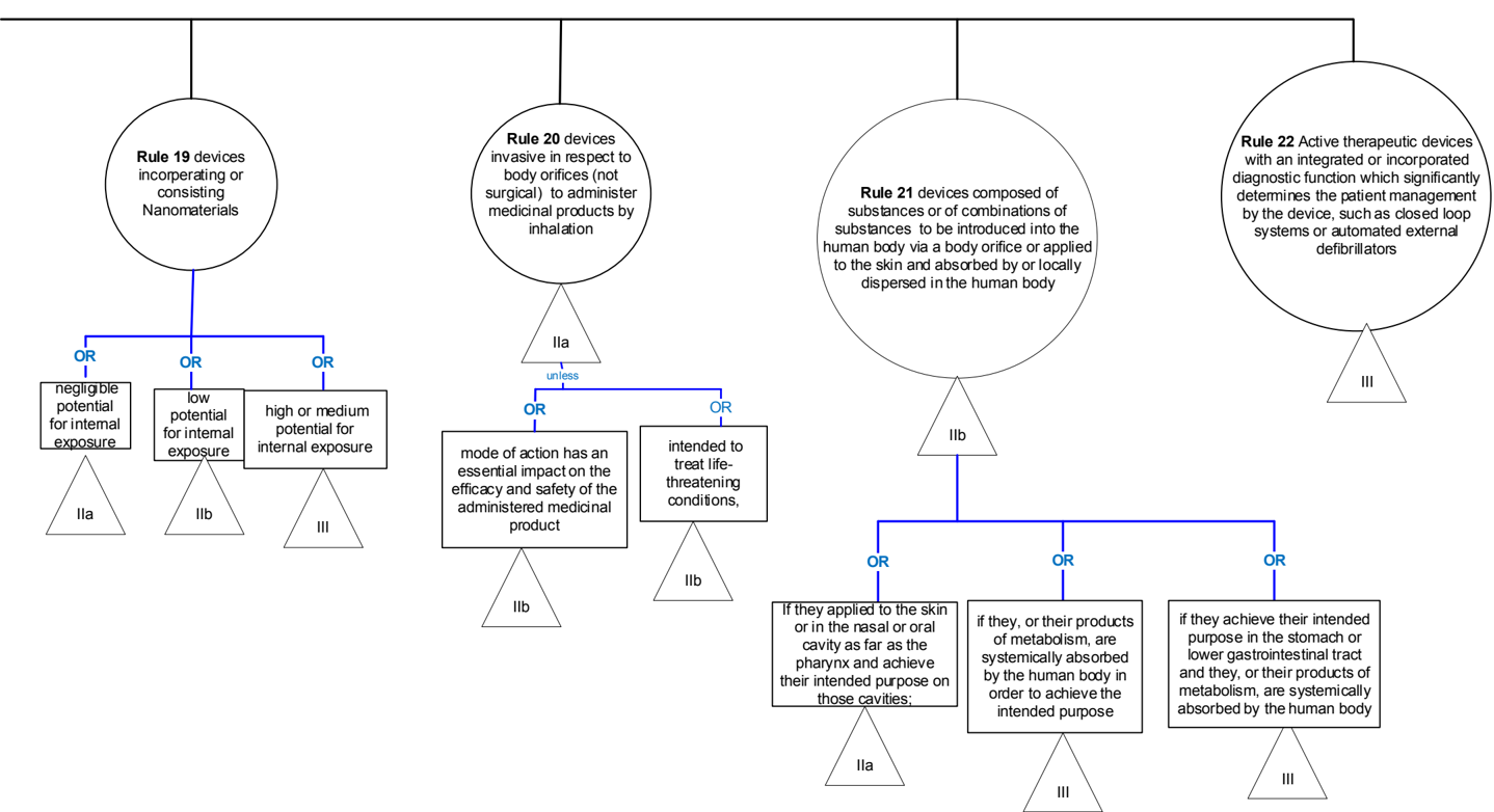 EU MDR附件VIII包含22条分类规则,分为以下几类: