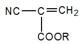 α-氰基丙烯酸酯类医用粘合剂产品的单体成分为α-氰基丙烯酸酯,CH2=C(CN)-COOR,见结构式A;固化后形成聚(α-氰基丙烯酸酯),见结构式B。