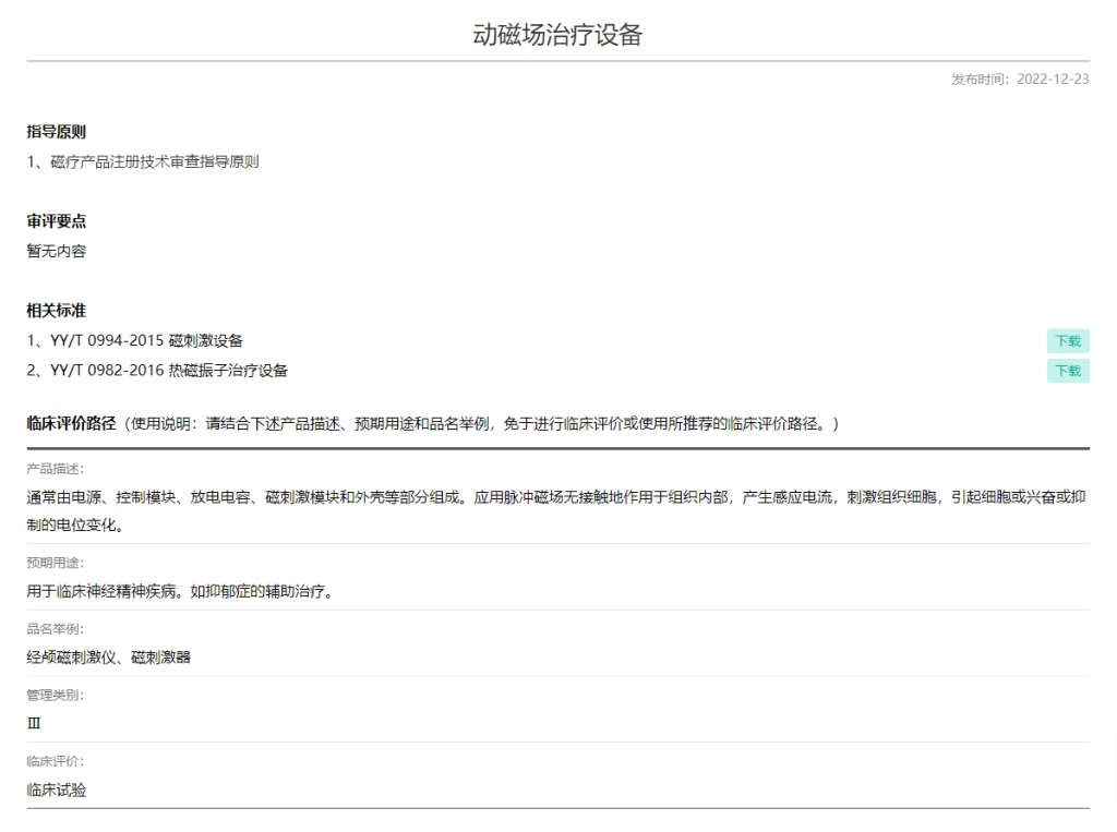 [1] 2022-12-23,该类别产品中经颅磁刺激仪(TMS)已调整为III类: