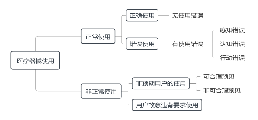 如图2所示,医疗器械使用情况可分为正常使用和非正常使用,其中正常使用是指用户按照说明书要求及常识惯例操作医疗器械,反之即为非正常使用。
