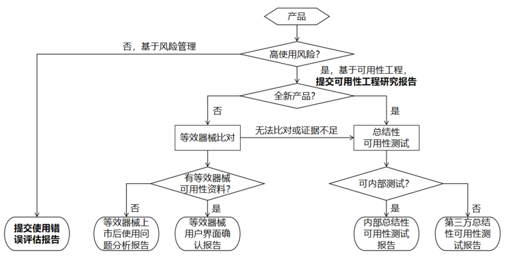 综合考虑行业发展水平和使用风险分级管理导向,医疗器械使用风险级别不同,其可用性工程生命周期质控要求和注册申报资料要求亦不同。注册申请人需综合判定医疗器械使用风险级别,并采取与之相适应的生命周期质控措施:高使用风险医疗器械原则上需开展完整可用性工程生命周期质控工作,中、低使用风险医疗器械可基于风险管理过程开展可用性工程生命周期质控工作。高使用风险和中、低使用风险医疗器械注册申报资料的差异详见第八部分。
